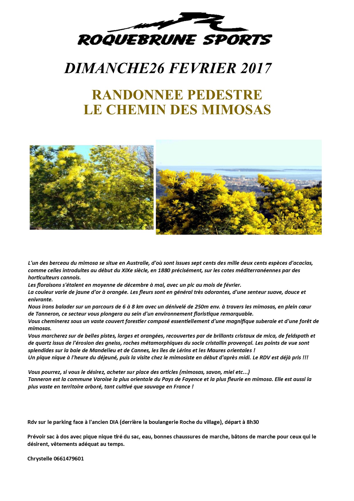 Dimanche 16 février 14 : Randonnée des Mimosas